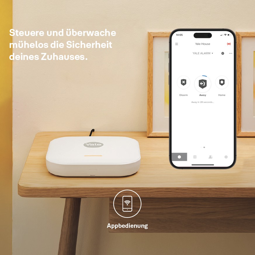 Möchten Sie sicher schlafen und sorgenfrei das Haus verlassen? Dieses Alarmsystem wird Ihr stiller Wächter. Mit der Yale Home App aktivieren Sie den Alarm, wenn Sie gehen, und deaktivieren ihn bei der Rückkehr, oder wählen den Teilaktivierungsmodus, wenn Sie zu Hause sind.
